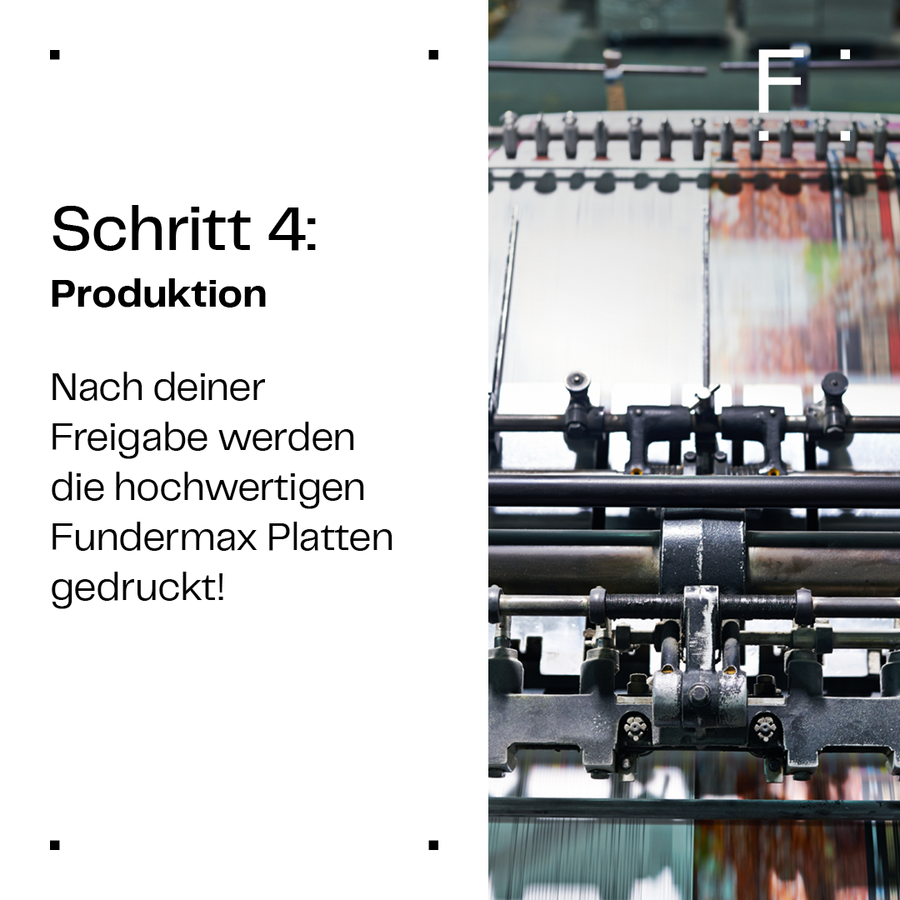 Ist das entsprechende Hochdrucklaminat gefunden, kann die Gestaltung des individuellen Drucks beginnen. In vier Schritten ist dein Individualdruck schnell und einfach in Produktion: