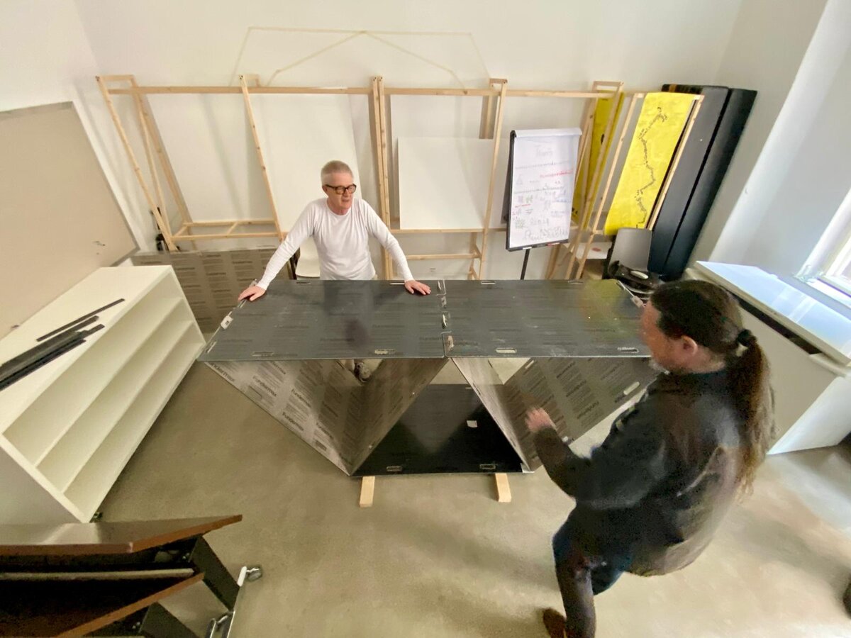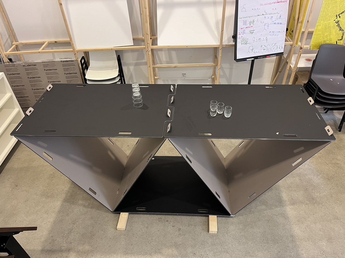 An impressive example of the versatile application of Alucompact panels is the recently created bar table, which was developed in cooperation with IG Architektur. The Alucompact panels Aura in the colors 0080 AP (black) and 2206 AP (fango) in 8mm were used for this.