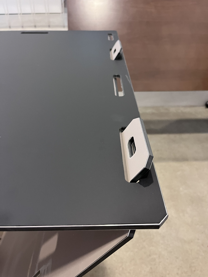 The bar table not only impresses with its robust construction, but also with its modern design. Thanks to IG Architektur's clever plug-in system, the Alucompact tops can be joined together easily and stably. The visible cut edge is particularly impressive, elegantly accentuating the aluminum core and creating a unique look.