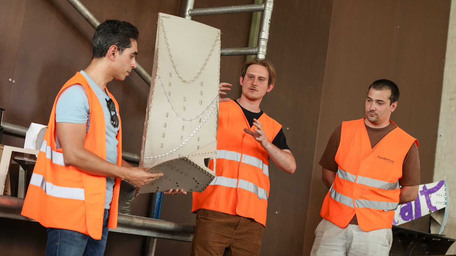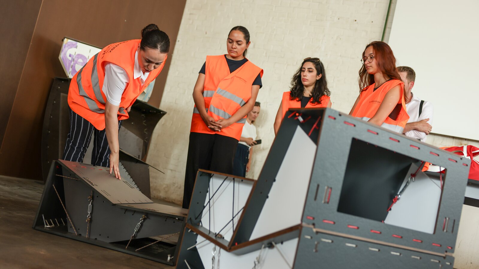 Between 30 May and 23 June 2025, the students worked intensively with their professors on site at the Fundermax location in Wiener Neudorf to bring their designs to life. The crowning finale was the presentation on 23 June 2025, to which architects and experts in the circular economy were invited. They evaluated the projects and provided valuable feedback on the practical implementation and further development. The results impressively demonstrate how creatively and versatilely pre-consumer waste can be used.