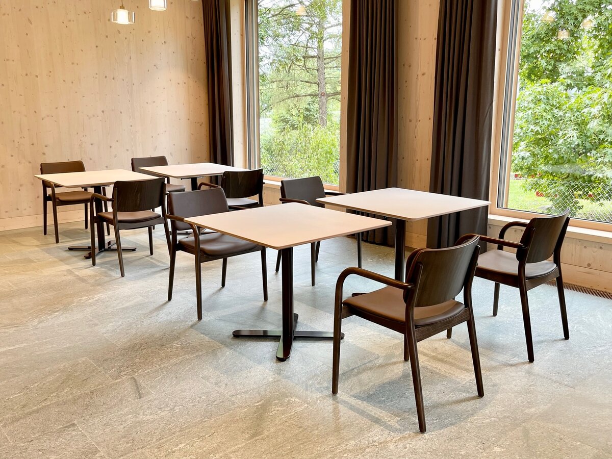 ‘Minimal’ is the perfect reinterpretation of the classic mid-leg table. The base plate, reduced to a cross foot, impresses with its well-thought-out shape and clear lines. “Minimal” looks elegant and, thanks to its understated aesthetics, can be used in almost any setting. The table series is ideal for commercial and private use and can be combined with many chair models.