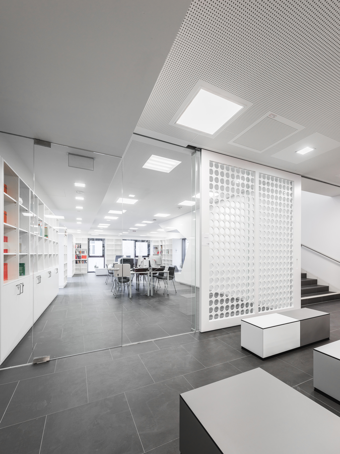 Classrooms are kept transparent toward the circulation and communication areas—which creates a continuum of learning, working and communication areas flowing into one another.