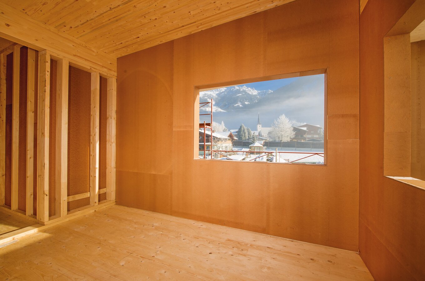 Funderplan est statiquement efficace et est utilisé comme parement de raidissement côté pièce dans les constructions à ossature bois. La résistance à la flexion et à la traction transversale est presque deux fois plus élevée que celle des produits comparables. Les grands formats, qui permettent de couvrir trois travées, favorisent la production et le montage en usine, ce qui permet d'économiser du temps et de l'argent.