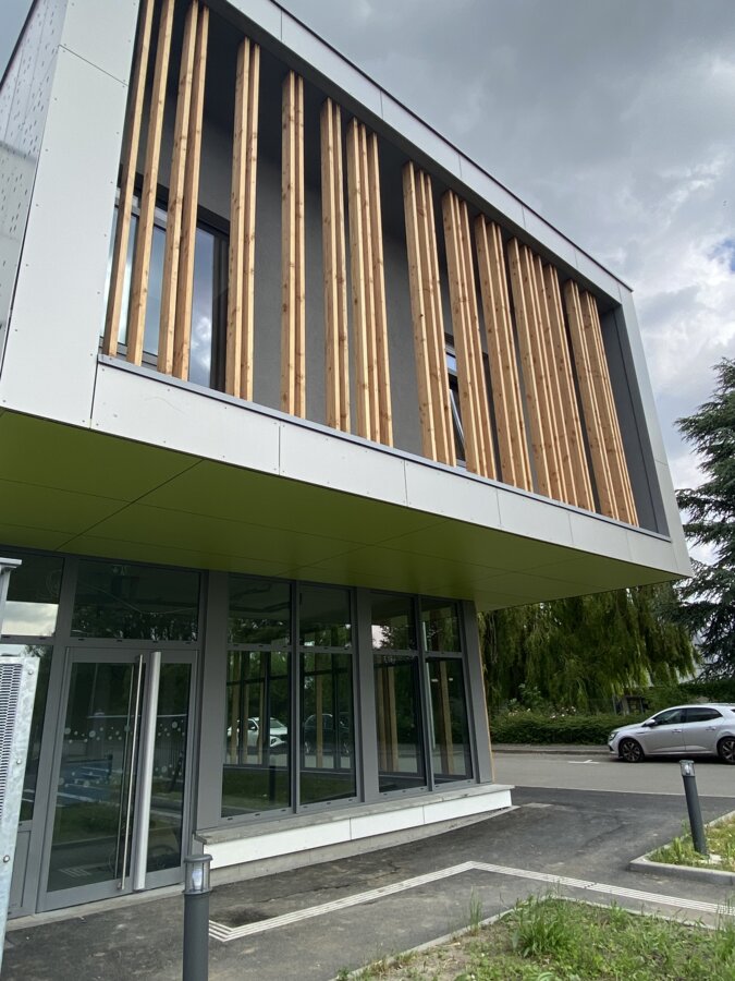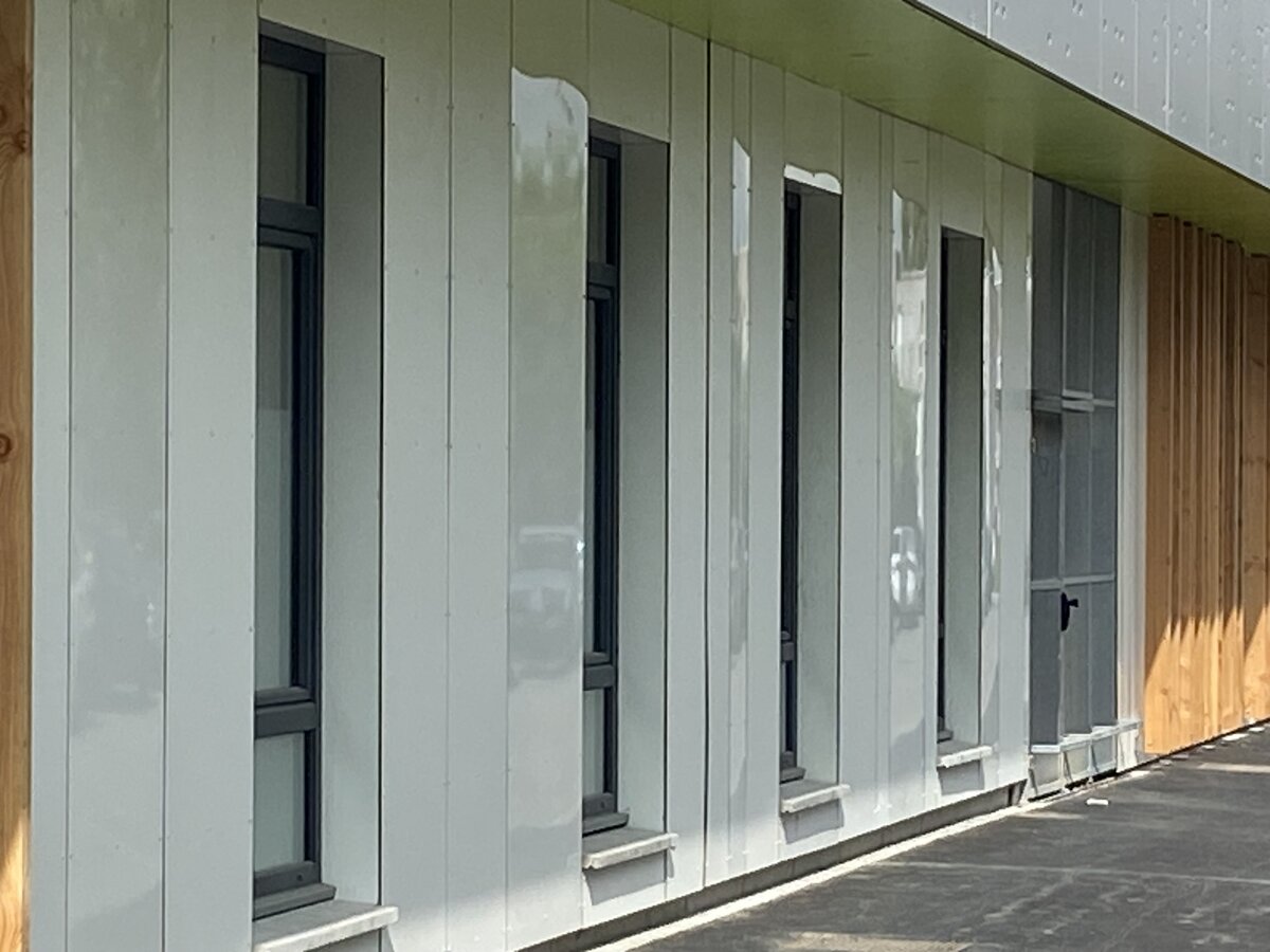 La scelta dei colori e dei materiali è stata attentamente studiata per armonizzare l'edificio esistente e l'ampliamento. Abbiamo cercato di dare verticalità a questa lunga struttura. L'uso di pannelli bianchi, con un'alternanza di finiture lucide e satinate e una varietà di formati, conferisce alla facciata un ritmo dinamico e luminoso, in cui la luce svolge un ruolo essenziale nell'accentuare i volumi e creare un'atmosfera vivace. Questo ritmo è accentuato dall'installazione verticale dei pannelli, che contrasta con la disposizione allungata dell'ampliamento. - Hubert Clays - Form'@ architecte