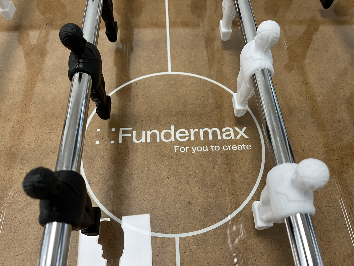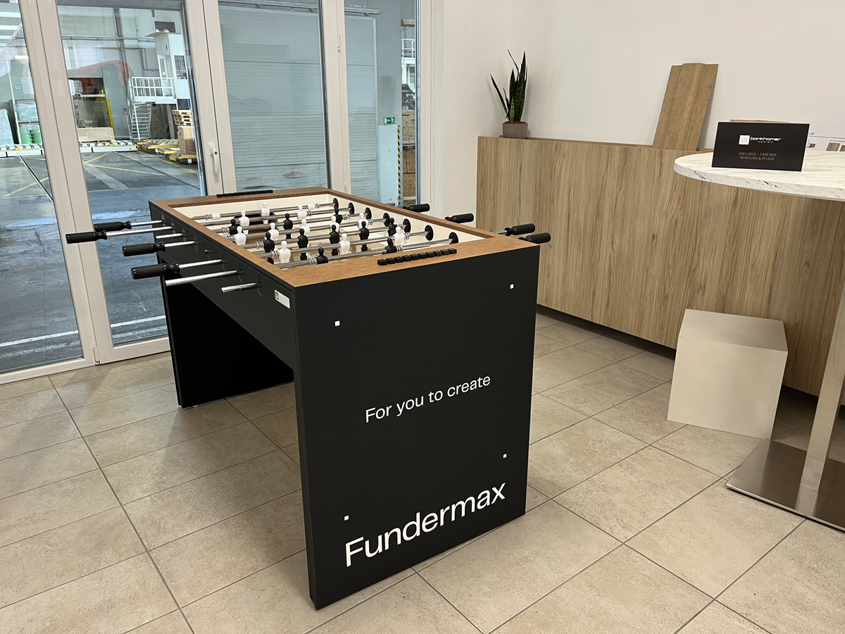 The idea behind the table football tables was as follows: to skilfully showcase the products manufactured at the respective Fundermax site in Austria and thus also demonstrate the versatility of the products.