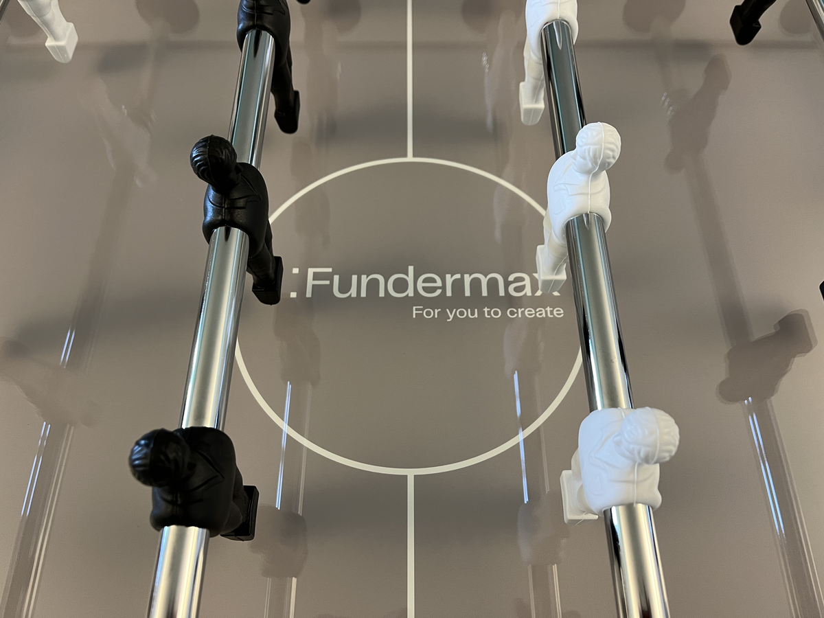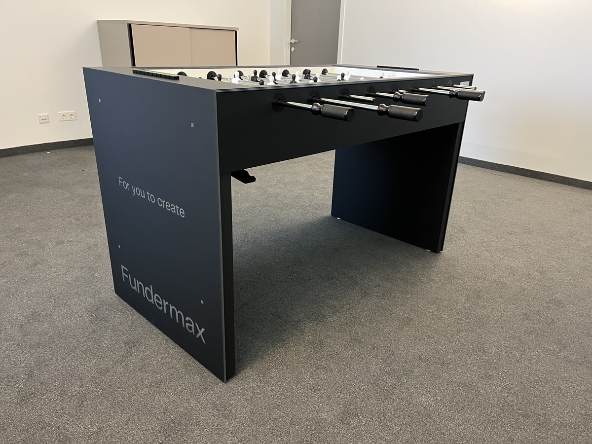 The idea behind the table football tables was as follows: to skilfully showcase the products manufactured at the respective Fundermax site in Austria and thus also demonstrate the versatility of the products.