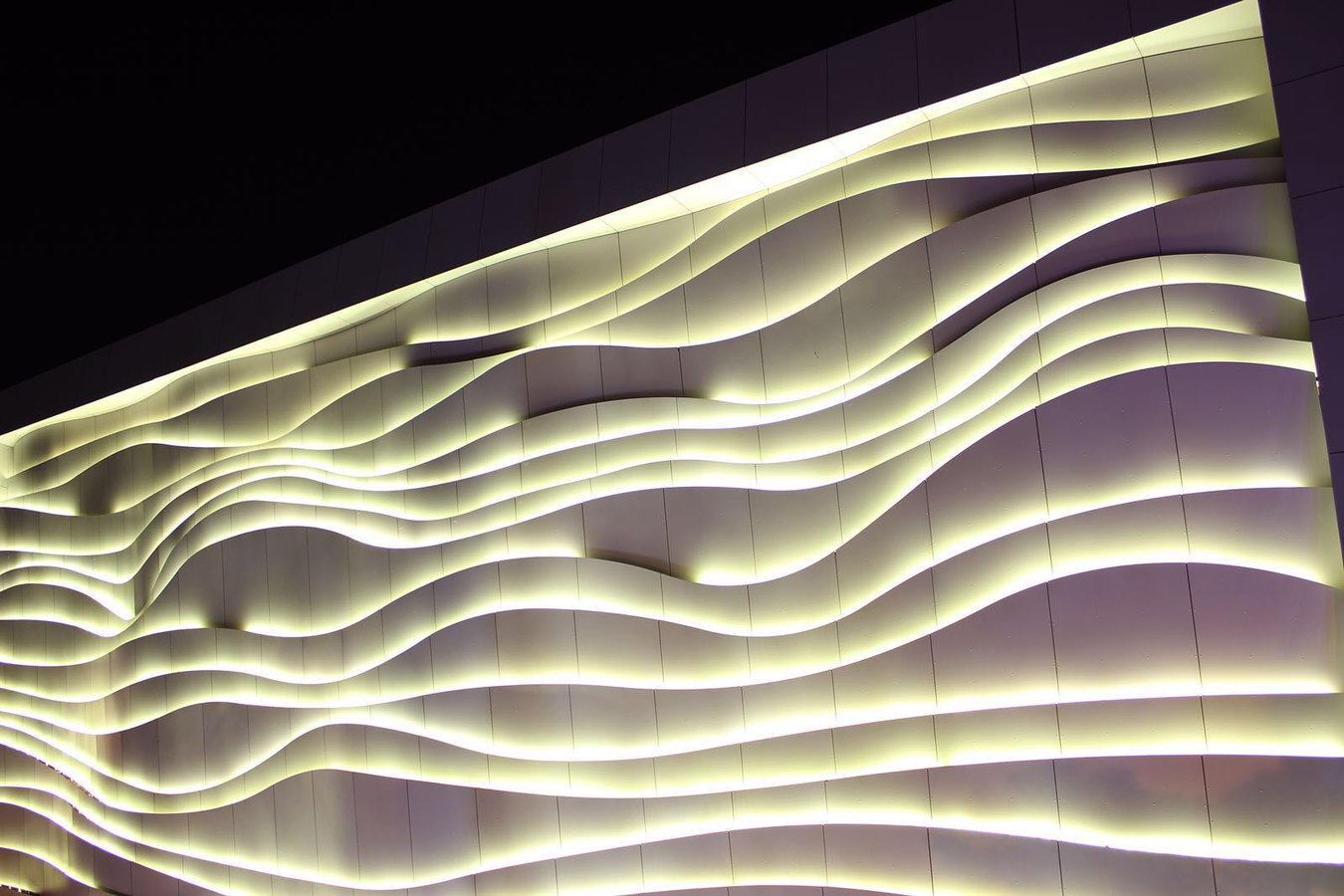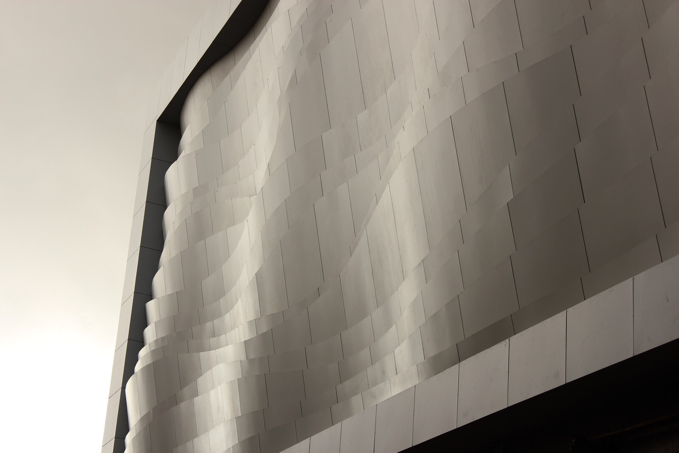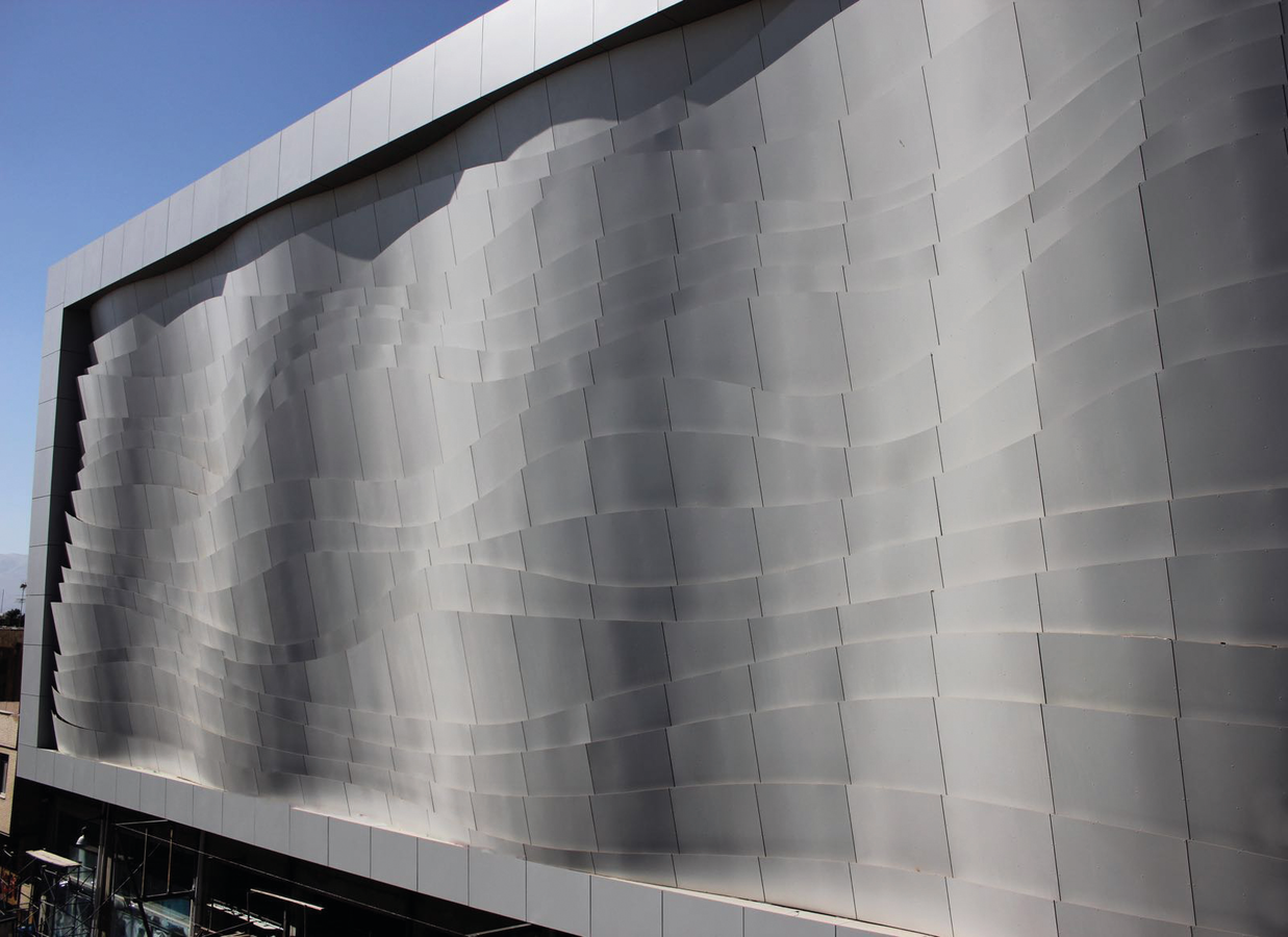 Fundermax 3D Fassade Shoppingcenter aus Max Compact Exterior im Dekor 0085 und der Oberfläche NT