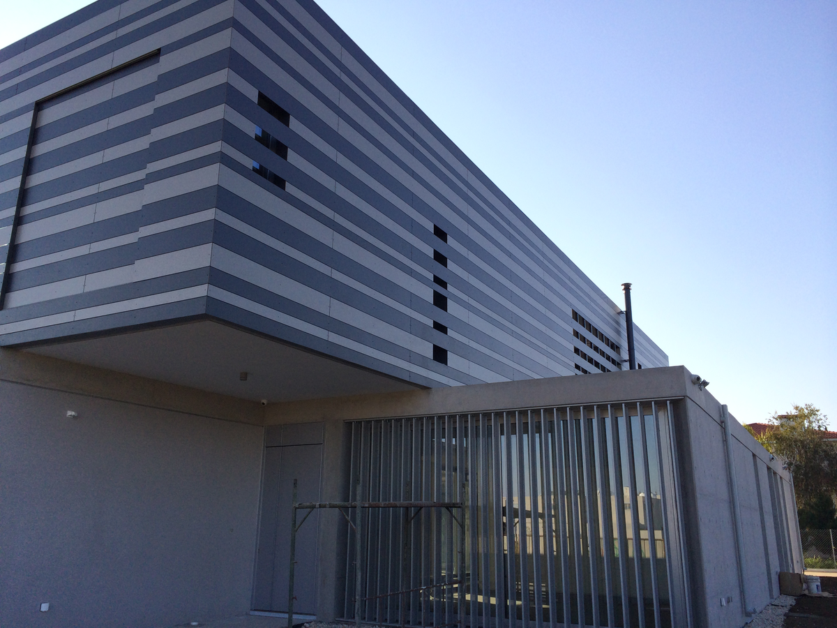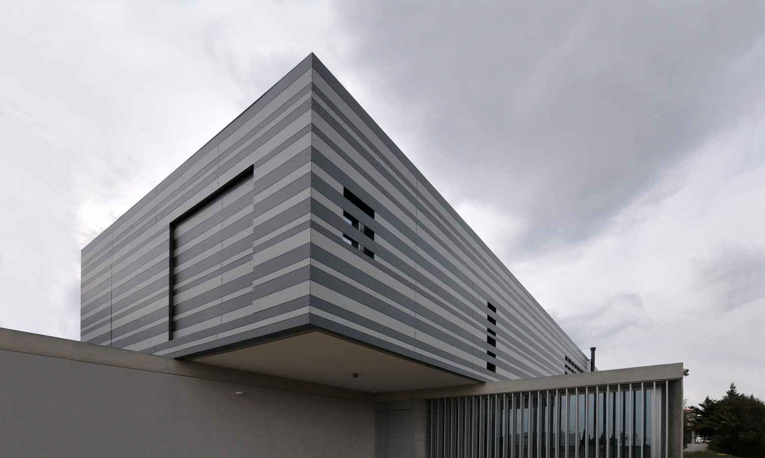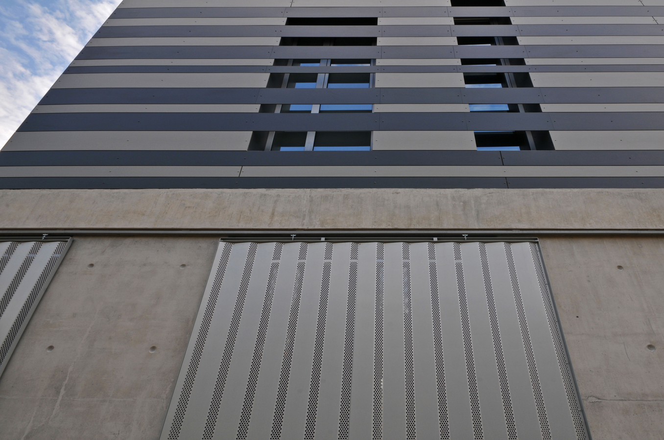 Fundermax Fassade und Sonnenschutz Haus in Strovolos aus Max Compact Exterior in den Dekoren 0070 und 0747 sowie der Oberfläche NT