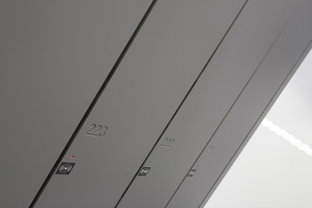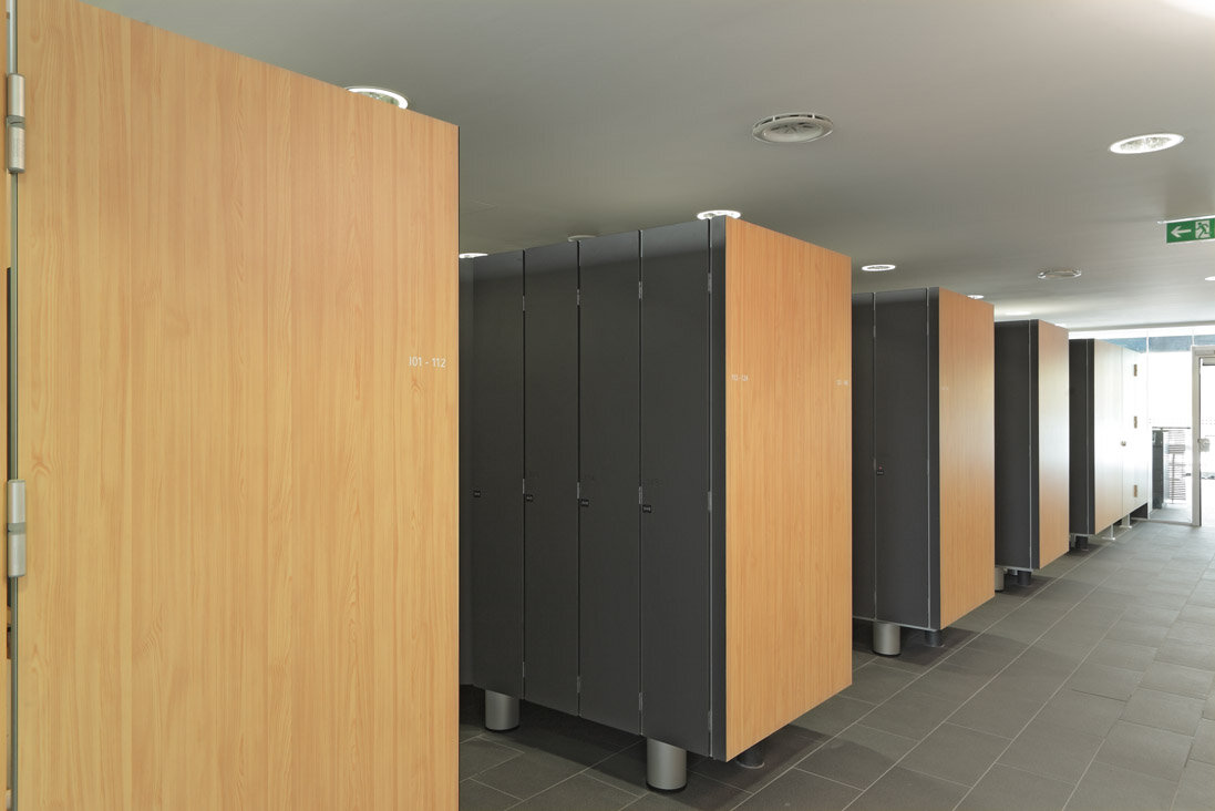 Fundermax Kabinen Badehaus aus Max Compact Interior in der Oberfläche FH