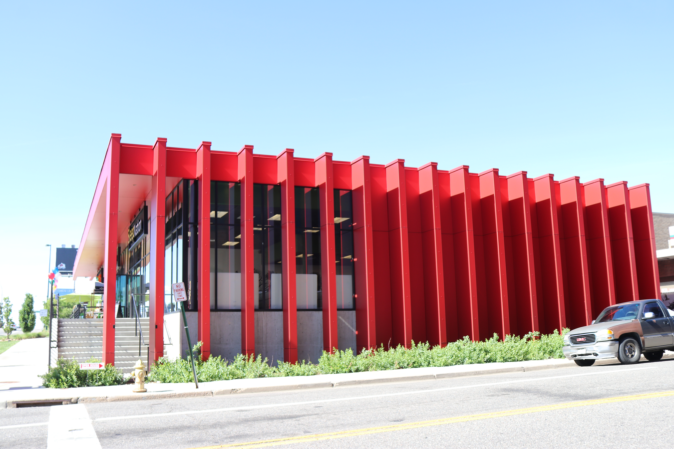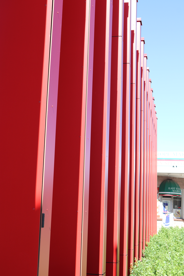 Fundermax Fassade Einkaufszentrum in Denver aus Max Compact Exterior im Dekor 0689 sowie der Oberfläche NT
